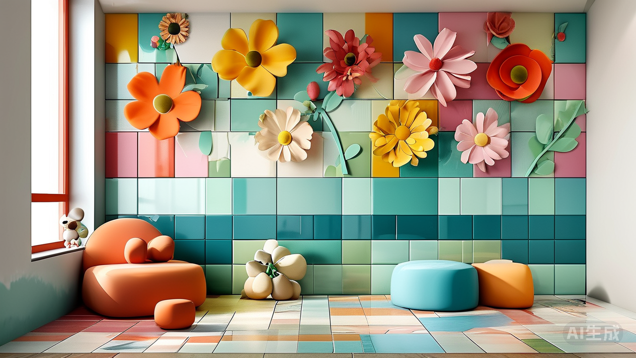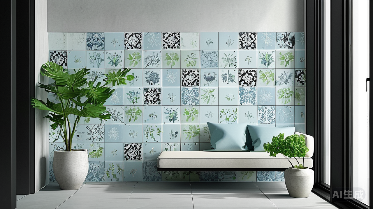 颜色图案 颜色的选择要与整体装修风格相协调。简约现代风多青睐黑白灰等中性色调,通过不同深浅的变化来营造层次感;田园风则偏爱清新淡雅的色彩组合,如淡蓝、嫩绿搭配碎花图案的花片,仿佛将户外美景引入室内。此外,还可以大胆尝试对比强烈的撞色设计,或是融入具有文化特色的民族风元素图案,让小瓷砖成为展现个人品味的艺术载体。比如在儿童房使用卡通形象的花片拼接成趣味故事墙,激发孩子的想象力。