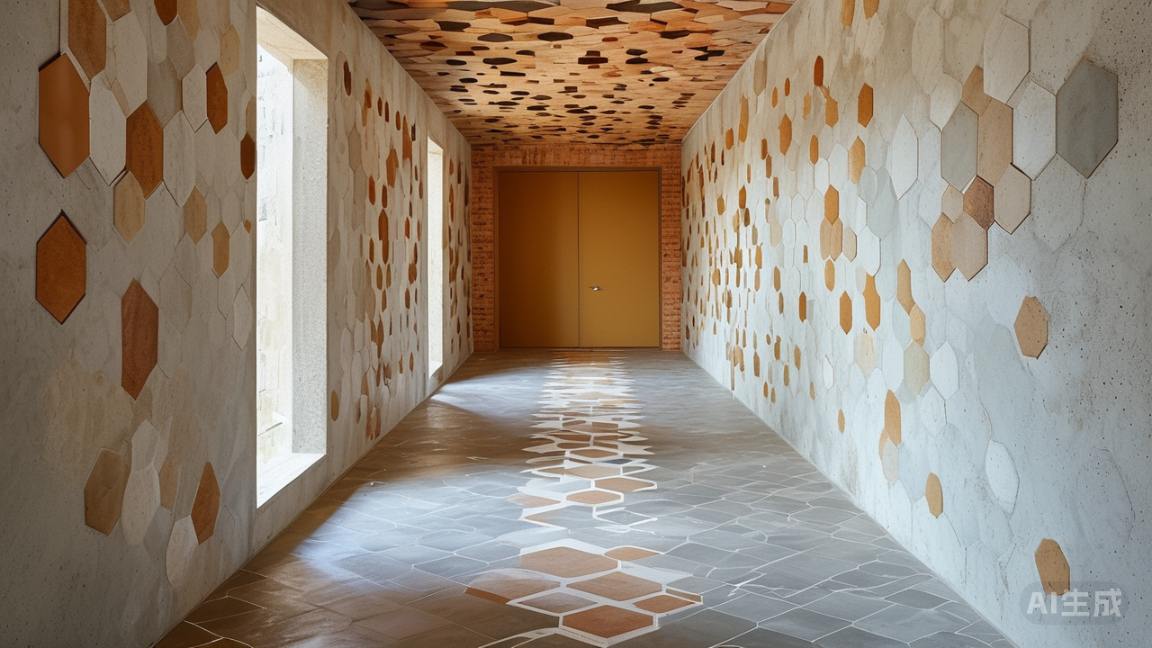 拼接方式:自由灵动,打破常规布局传统的方正铺贴法在侘寂风面前显得过于拘谨刻板。为了让空间更具流动感和艺术张力,我们可以尝试多样化的拼接手法。人字形拼花是一种极具创意的选择,将两块微水泥瓷砖按一定角度斜向排列,形成类似鱼骨的形状,沿着走廊一路延伸开来,仿佛指引着人们踏入一场神秘的探险之旅;六角形蜂窝状拼接则适合用于小面积的重点区域装饰,如玄关处的落脚点或阳台角落的休闲区,小巧精致的几何图形组合在一起,宛如蜂巢般充满秩序而又不失活泼趣味。还可以混合不同规格、形状的微水泥砖进行随机混搭,大尺寸与小尺寸相互穿插,方形与长方形交错呼应,创造出一种随性自在却又暗藏匠心的独特视觉效果,就如同自然界中万物生长的自由姿态。