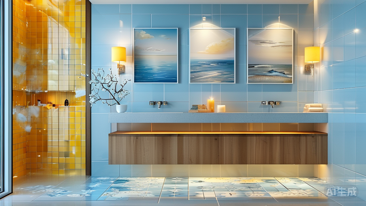 色彩搭配:和谐共生的色彩美学色彩是影响空间氛围的重要因素之一。在使用花砖打造背景墙时,要注意与其他元素之间的色彩协调性。一般来说,如果家具和软装已经选择了较为鲜艳的颜色,那么花砖的颜色可以适当淡雅一些,以免造成视觉上的混乱;反之,若整体色调偏素净,则可以通过色彩斑斓的花砖来增添活力。另外,还可以利用色彩心理学原理,根据不同的功能需求选择合适的颜色。比如,在浴室中使用蓝色系的花砖能够带来宁静放松的感觉,有助于缓解一天的压力;而在厨房中选用暖色调的花砖,如黄色、橙色等,则能激发食欲,营造温馨愉悦的烹饪环境。